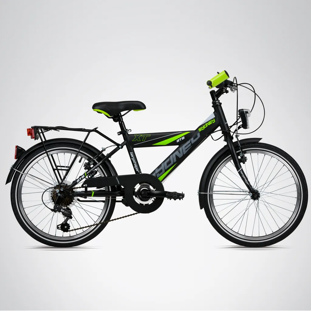 Mit einer Rahmenhöhe von 31 Zentimetern richtet sich Sydney an Kinder mit einer Körpergröße ab 1,15 Metern. Der innovative Hi-Ten Stahlrahmen ist extrem robust und nimmt auch stärkere Beanspruchungen kaum übel. Das Fahrrad verfügt über einen geschlossenen Kettenkasten, der zu einer höchstmöglichen Sicherheit beiträgt. Ein rasanter Hingucker ist zudem der topaktuelle MTB-Lenker mit den farbigen Bar-Ends. Er macht aus dem Kinderfahrrad einen trendstarken Blickfang und verhindert mit seiner auffallenden Optik Verwechslungen.